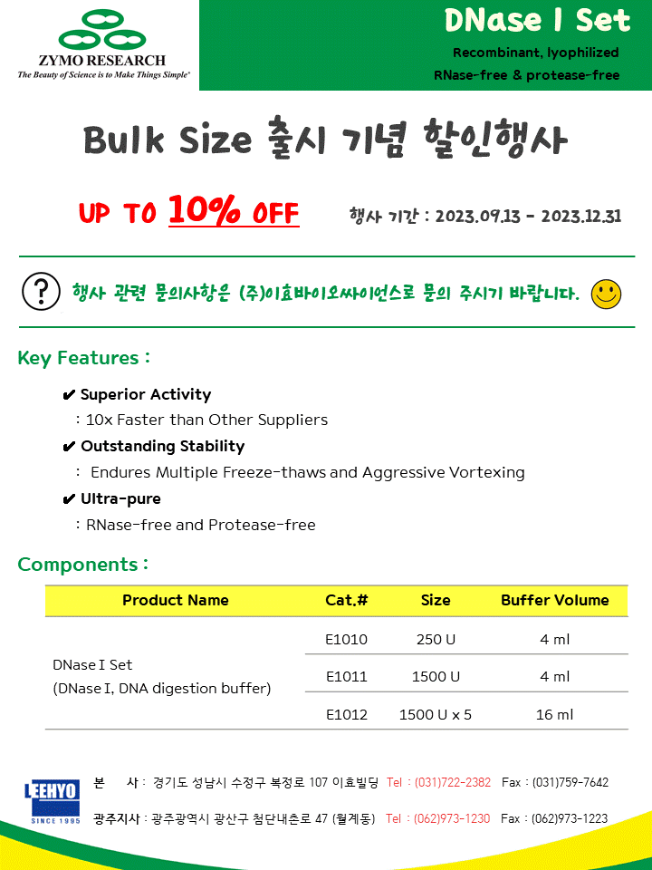 [Zymo Research] DNase I 할인 행사!